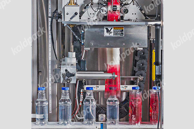 Koldpack sleeve applicator in multi-functional machine that can run sleeves in roll form and is capable of applying full body sleeve or a sleeve at a particular location on the bottle. This can be done by a specially designed attachment. Servo/stepper based label feed & cutting system so you can rely on high speed, better accuracy & great repeatability of label every time The steam tunnel comes immediately after the sleeve applicator machine, which shrinks the label perfectly onto the bottle taking the shape of the container without any creases. Steam is controlled economically by controlled valves and can be directed at the label precisely. Another option is a hot air system where steam is not available.